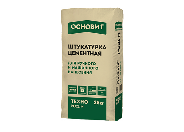 Штукатурка ОСНОВИТ ТЕХНО PC21 M предназначена для выравнивания стен из бетона, кирпича, пено- и газобетона.